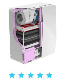 Бризер вешается на стену, входное отверстие прибора плотно стыкуется с воздуховодом при помощи уплотнителя, чтобы исключить сквозняки.