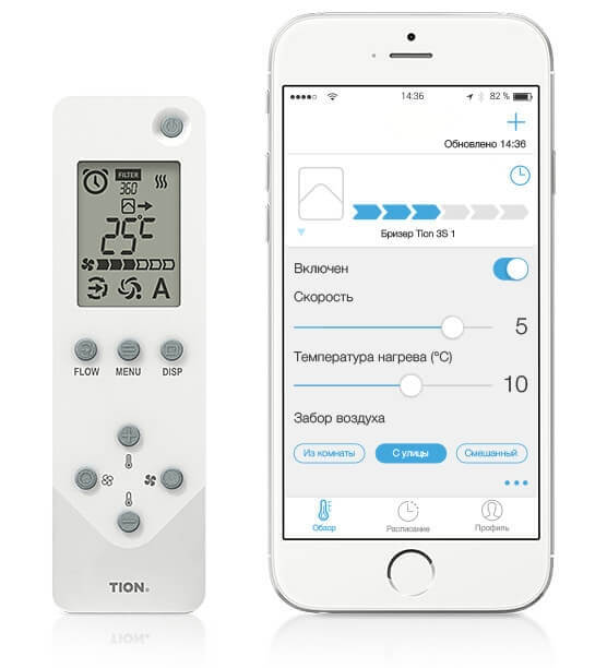 Управляйте бризером 4S с помощью пульта с LCD-дисплеем или бесплатного мобильного приложения MagicAir.