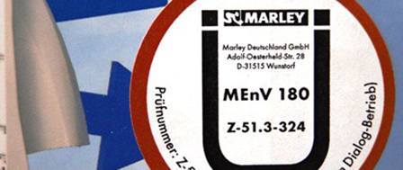 Обновленная модель рекуператора MarleyMEnV-180 допущена к эксплуатации Немецким Институтом строительной техники "Deutsches Institut für Bautechnik". Вне сомнений, самый беспристрастный, компетентный и уважаемый институт, контролирующий качество и безопасность товаров на территории Германии, а, пожалуй, и всей Европы.