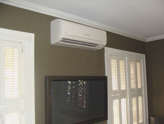 - Наружный блок размещают под окном таким образом, чтобы верхняя грань была не выше уровня подоконника. С другой стороны стены будет находиться внутренний блок. Расстояние между блоками не должно составлять более трех метров.