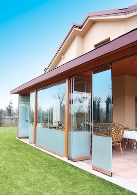 Vizyon-VTS относится к системам с перпендикулярной парковкой створок. Чтобы полностью открыть пространство, достаточно нескольких движений. Крайняя створка открывается под прямым углом, остальные по направляющим собираются к ней и тоже поворачиваются, собираясь в пачку. Это позволяет освободить максимум пространства, а при необходимости вновь полностью закрыть его всего за минуту. Vizyon-VTS не имеет никаких перегородок, потому смотрится как сплошная стеклянная стена. Это великолепное декоративное решение, обеспечивающее панорамный обзор. У него есть и другие преимущества:
